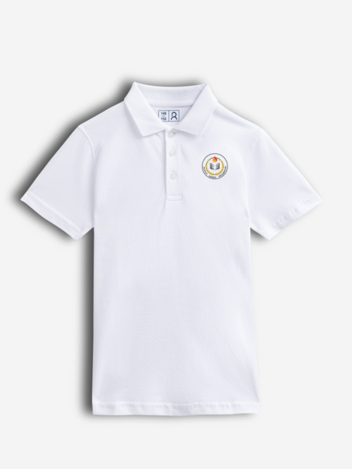SiuvinėtasMarijampolės Jono Totoraičio progimnazijos polo marškinėliai, balti